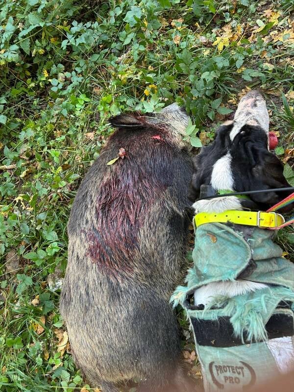 Ce samedi matin, Stéphane a fait le pied sérieusement dans un secteur qu’il affectionne beaucoup. Par provocation, Eric a annoncé 100 %. De quoi mettre le doute à l’équipe au vu de la réputation de notre ami. Un temps idéal pour cet après-midi, le brouillard des jours précédents s’est volatilisé et a laissé la place à un soleil très généreux. 16 postés, 5 traqueurs, un lâcher de chiens très requérants sur les odeurs, 20 minutes de rapproché, de ferme et une poussée sur la ligne du bas où est posté Marc qui d’une seule balle atteint une magnifique laie de 70 KG. Quelques bêtes rousses sont passées au travers du dispositif.